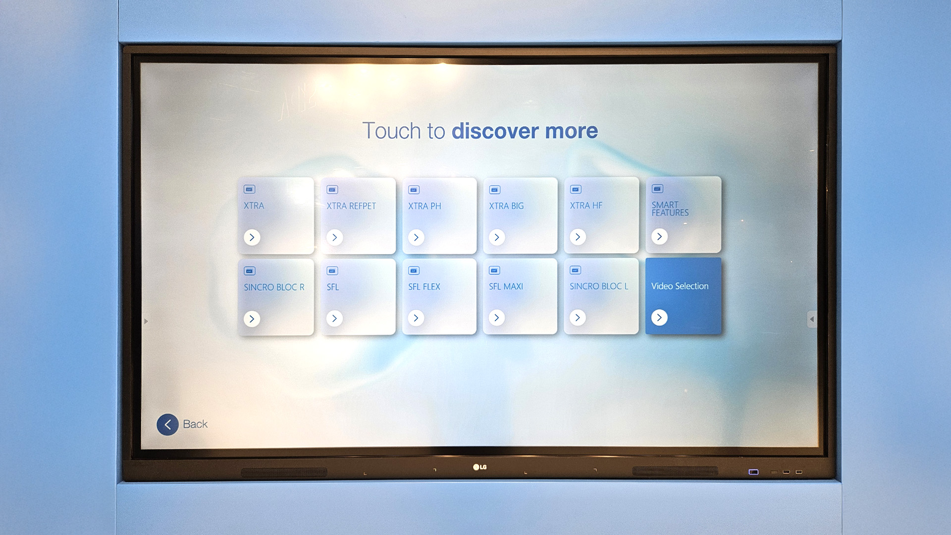 That’s not all: for the four machines presented at the trade show, we developed customized touch screens featuring videos and presentations that explain the different functionalities of each model.