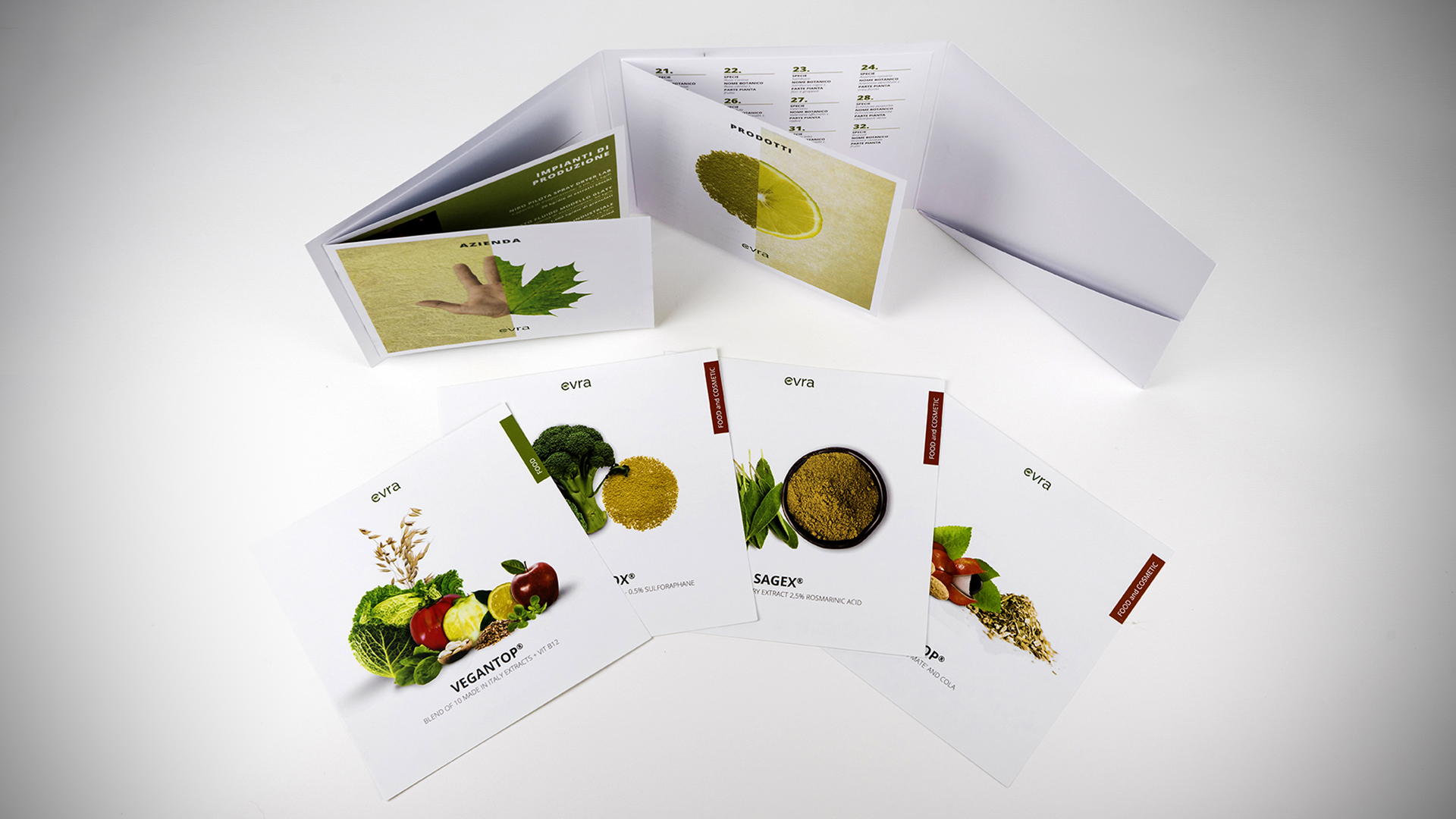 Progetto di Brand Identity per le aziende Evra e Nating, società collegate, entrambe leader nel settore degli estratti vegetali.